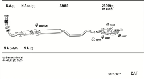 SAAB 9-5 kombi (YS3E) 2.2 TiD - Výfukový systém - kompletní od 3/2002 do 12/2009, 2171 ccm, 88 kW, 120 hp, D223L, kombi