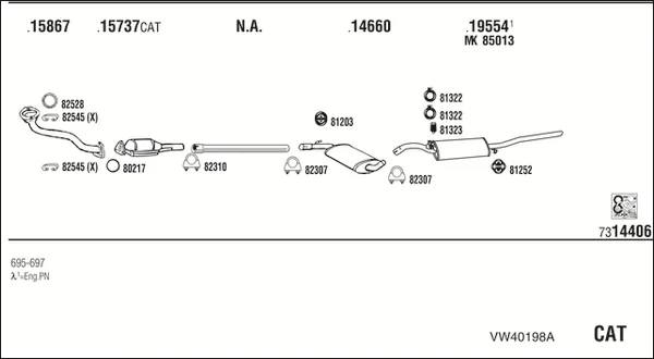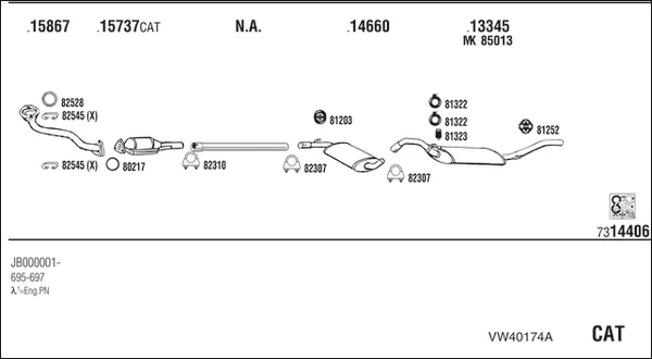 VW JETTA II (19E, 1G2, 165) 1.6 - Výfukový systém - kompletní od 10/1986 do 10/1991, 1595 ccm, 51 kW, 70 hp, PN, limuzína