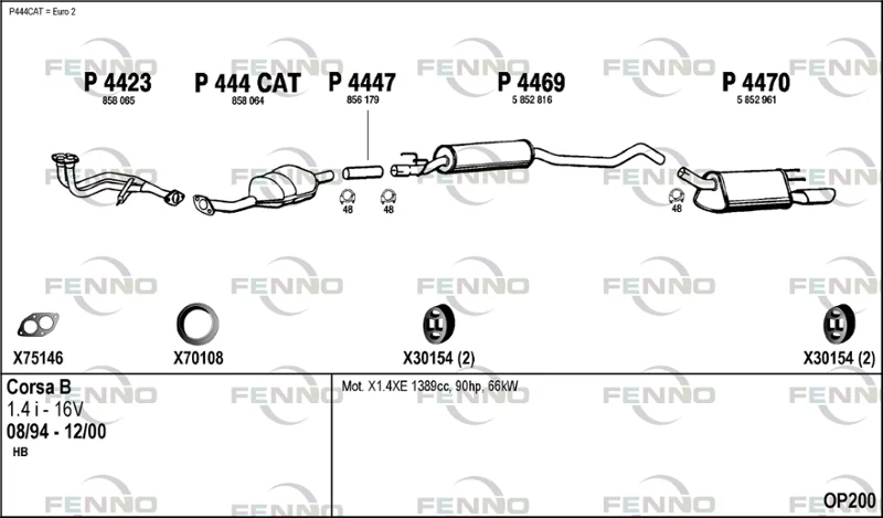 OPEL CORSA B (S93) 1.4 i 16V (F08, F68, M68) - Výfukový systém - kompletní od 8/1997 do 9/2000, 1389 ccm, 63 kW, 86 hp, C 14 SEL, Šikmá zadní část