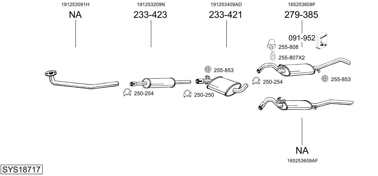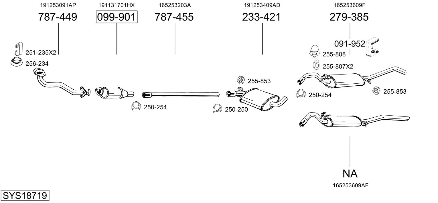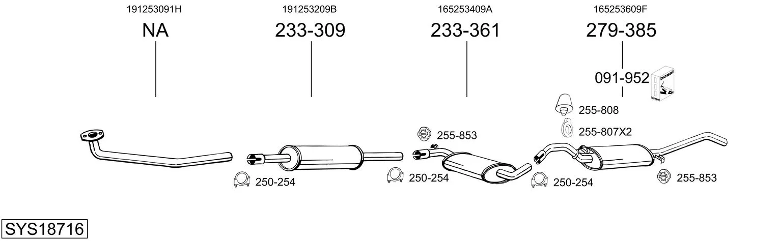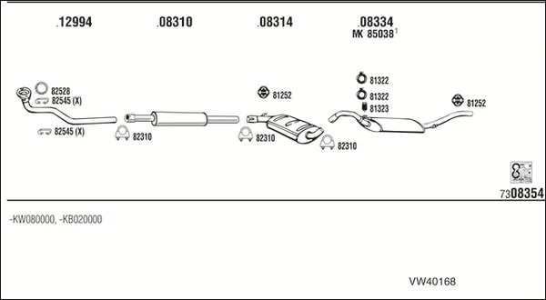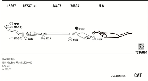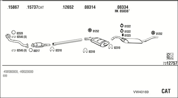 VW JETTA II (19E, 1G2, 165) 1.8 - Výfukový systém - kompletní od 8/1986 do 1/1990, 1781 ccm, 62 kW, 84 hp, RH, limuzína