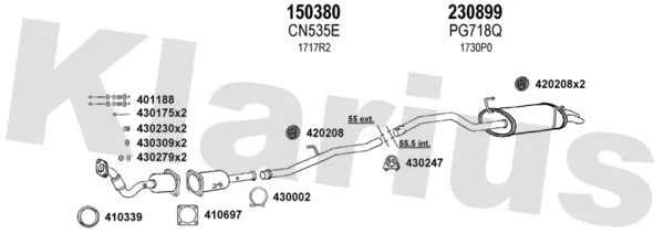PEUGEOT 807 (EB_) 2.2 HDi - Výfukový systém - kompletní od 6/2002, 2179 ccm, 94 kW, 128 hp, 4HW (DW12TED4), velkoprostorová limuzína