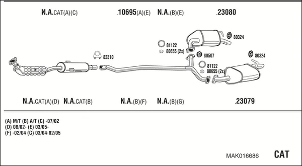 MAZDA 6 limuzína (GG) 2.3 (GG3P) - Výfukový systém - kompletní od 6/2002 do 8/2007, 2261 ccm, 122 kW, 166 hp, L3-VE, L3C1, limuzína