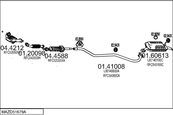 MAZDA 6 limuzína (GG) 2.0 DI (GG14) - Výfukový systém - kompletní od 6/2002 do 8/2007, 1998 ccm, 100 kW, 136 hp, RF5C, limuzína