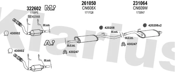 CITROËN C8 (EA_, EB_) 2.0 - Výfukový systém - kompletní od 7/2002, 1997 ccm, 100 kW, 136 hp, RFN (EW10J4), velkoprostorová limuzína