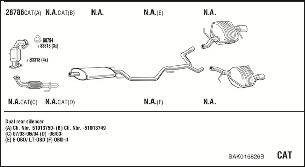 SAAB 9-3 (YS3F, E79, D79, D75) 2.0 t - Výfukový systém - kompletní od 9/2002 do 2/2015, 1998 ccm, 154 kW, 210 hp, B207R, limuzína