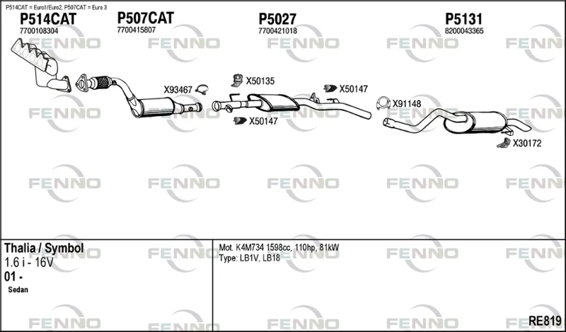 RENAULT THALIA I (LB_) 1.6 16V - Výfukový systém - kompletní od 7/2000 do 2/2009, 1598 ccm, 79 kW, 107 hp, K4M 740, limuzína