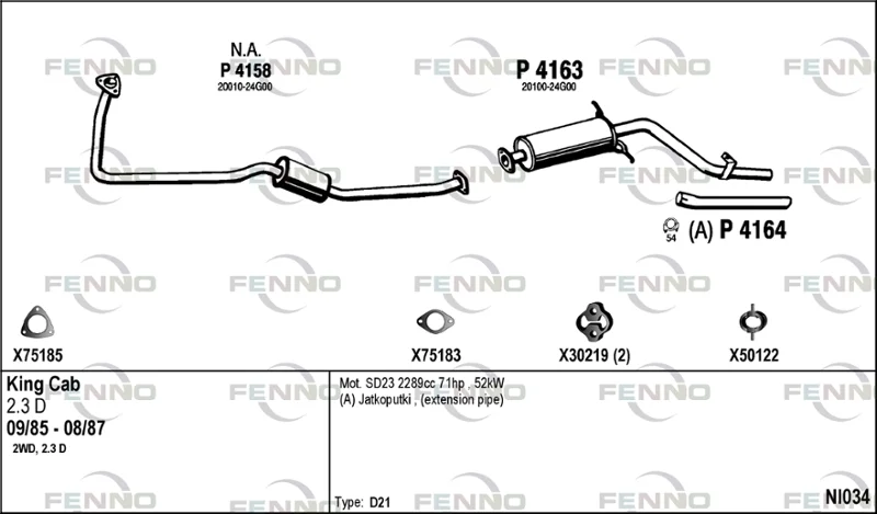 NISSAN PICK UP (D21) 2.3 D - Výfukový systém - kompletní od 9/1985 do 8/1988, 2289 ccm, 51 kW, 69 hp, SD23, pick-up