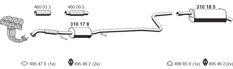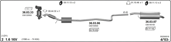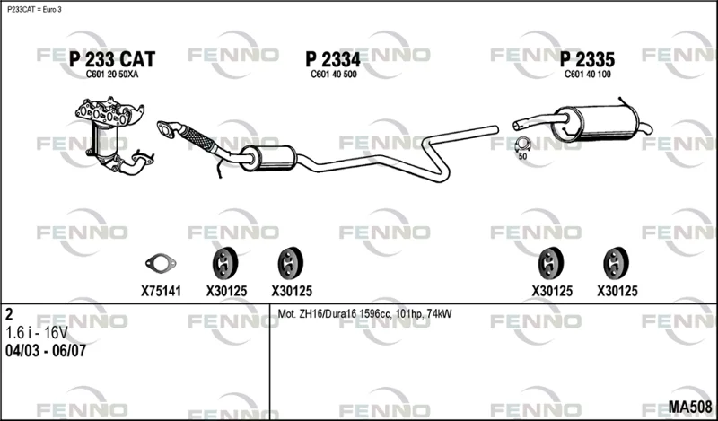 MAZDA 2 (DY) 1.6 - Výfukový systém - kompletní od 4/2003 do 6/2007, 1596 ccm, 74 kW, 100 hp, FYJA, Šikmá zadní část