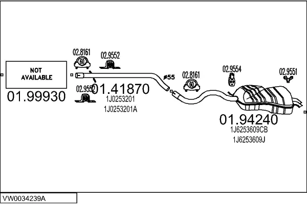 VW NEW BEETLE Kabriolet (1Y7) 1.9 TDI - Výfukový systém - kompletní od 6/2003 do 7/2005, 1896 ccm, 74 kW, 100 hp, AXR, BEW, Kabriolet
