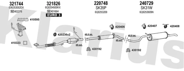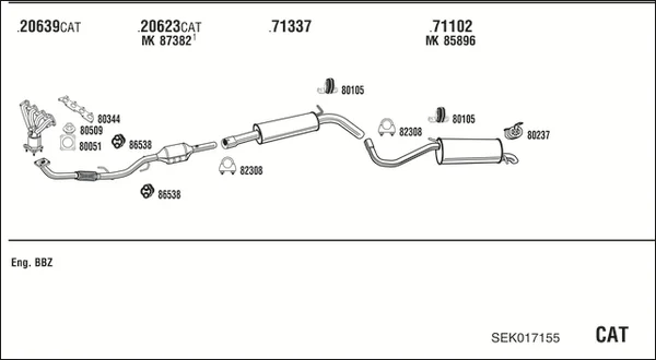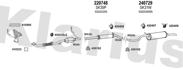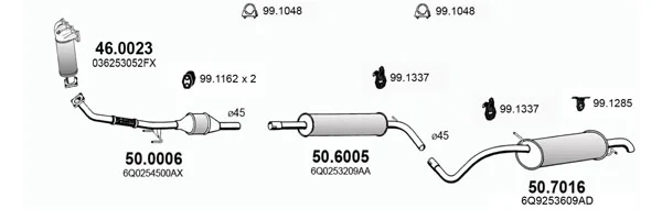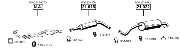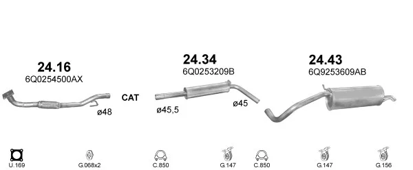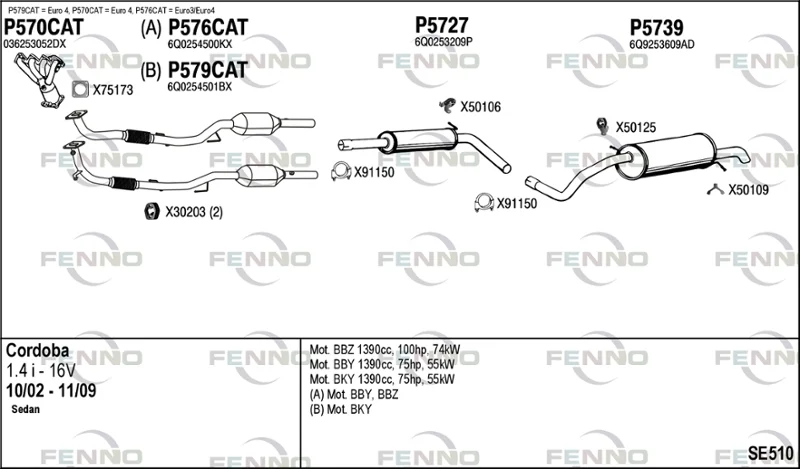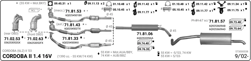 SEAT CORDOBA (6L2) 1.4 16V - Výfukový systém - kompletní od 10/2002 do 11/2009, 1390 ccm, 74 kW, 100 hp, BBZ, limuzína
