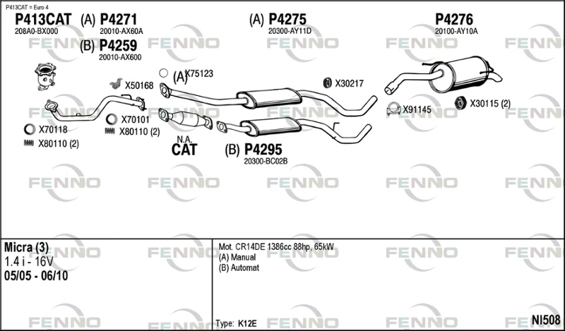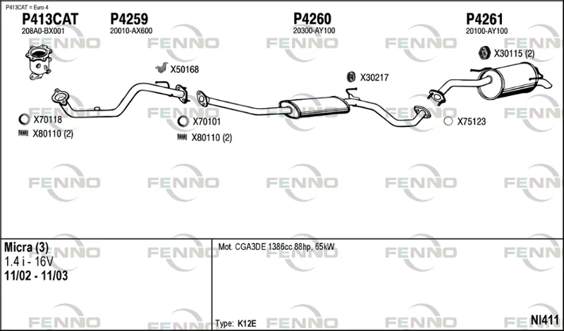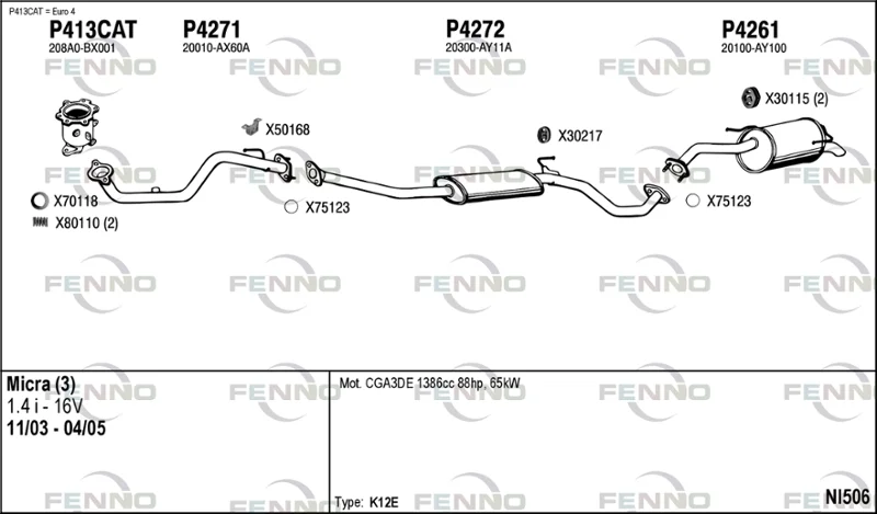 NISSAN MICRA III (K12) 1.4 16V - Výfukový systém - kompletní od 1/2003 do 6/2010, 1386 ccm, 65 kW, 88 hp, CR14DE, Šikmá zadní část