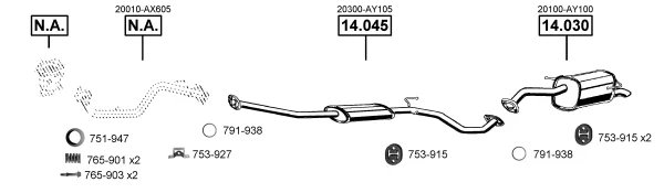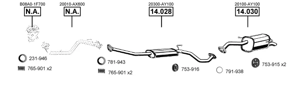 NISSAN MICRA III (K12) 1.4 16V - Výfukový systém - kompletní od 1/2003 do 6/2010, 1386 ccm, 65 kW, 88 hp, CR14DE, Šikmá zadní část