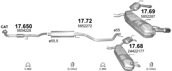 OPEL VECTRA C GTS (Z02) 2.0 16V Turbo (F68) - Výfukový systém - kompletní od 3/2003 do 8/2008, 1998 ccm, 129 kW, 175 hp, Z 20 NET, Šikmá zadní část