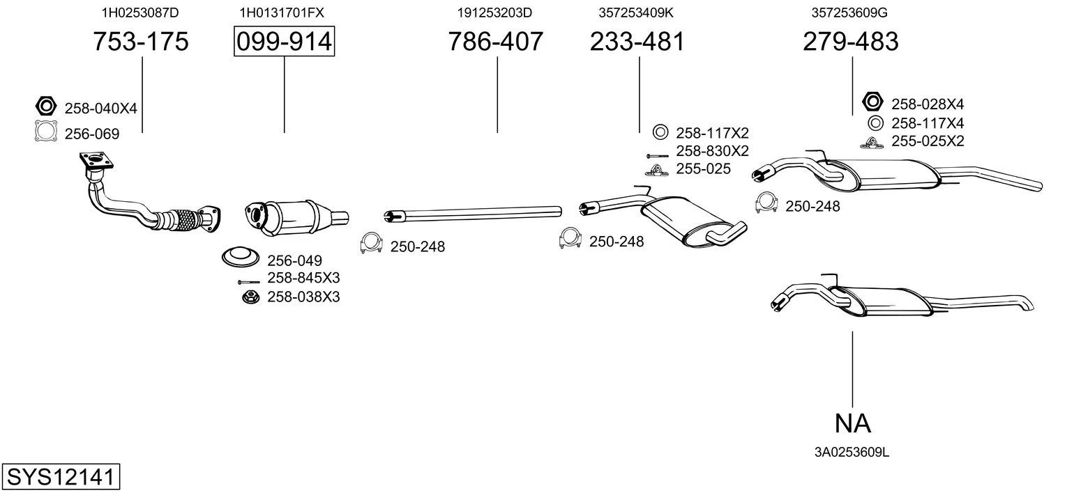 VW PASSAT B3/B4 (3A2, 35I) 1.8 - Výfukový systém - kompletní od 8/1990 do 8/1996, 1781 ccm, 55 kW, 75 hp, AAM, limuzína