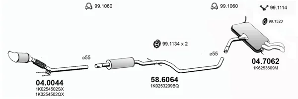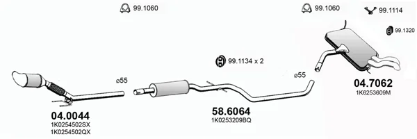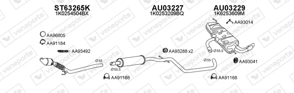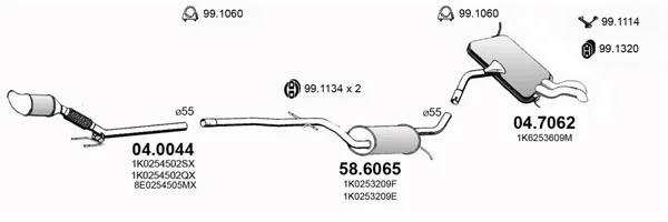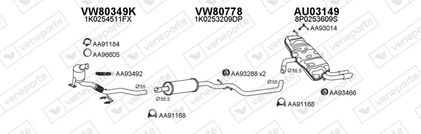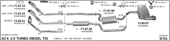 AUDI A3 (8P1) 2.0 TDI 16V - Výfukový systém - kompletní od 5/2003 do 8/2012, 1968 ccm, 103 kW, 140 hp, BKD, CBAB, CBEA, CFFB, CLJA, Šikmá zadní část