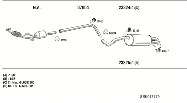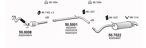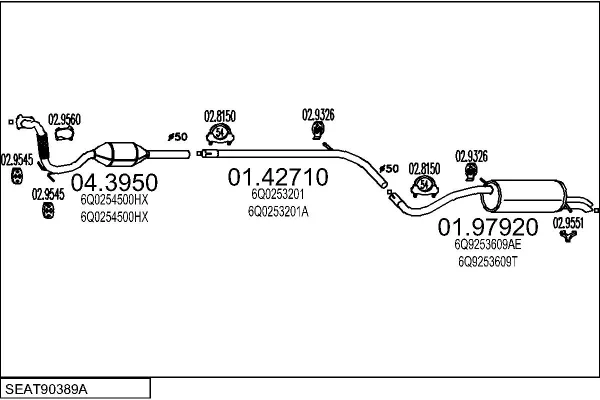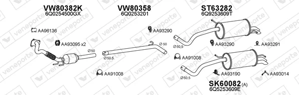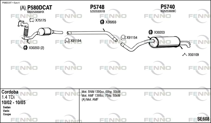 SEAT CORDOBA (6L2) 1.4 TDI - Výfukový systém - kompletní od 10/2002 do 12/2005, 1422 ccm, 55 kW, 75 hp, AMF, limuzína