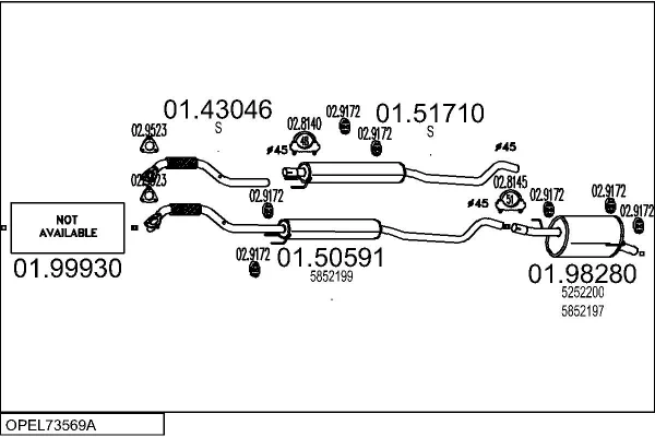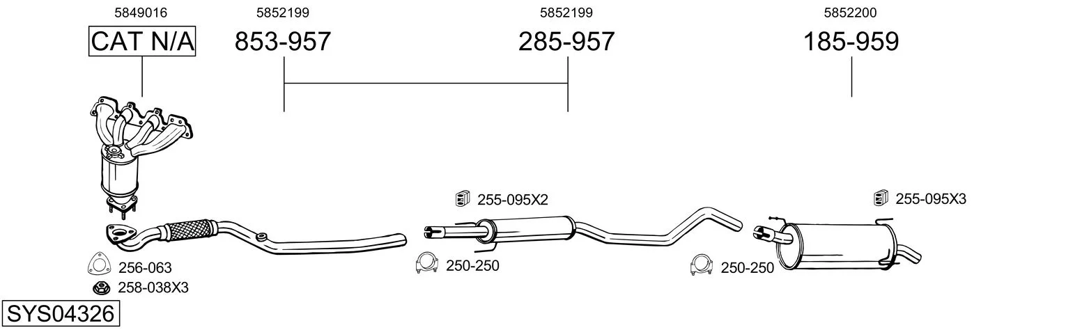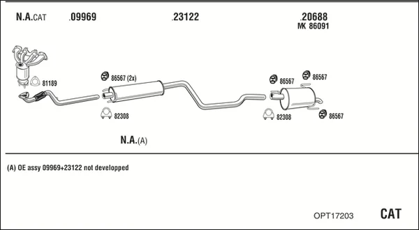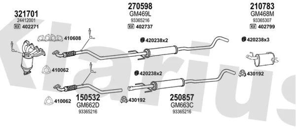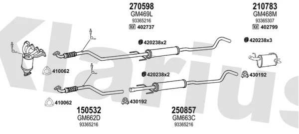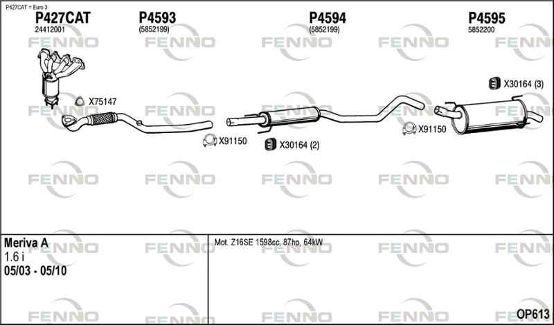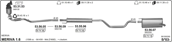 OPEL MERIVA A velkoprostorová limuzína (X03) 1.6 (E75) - Výfukový systém - kompletní od 5/2003 do 5/2010, 1598 ccm, 64 kW, 87 hp, Z 16 SE, velkoprostorová limuzína