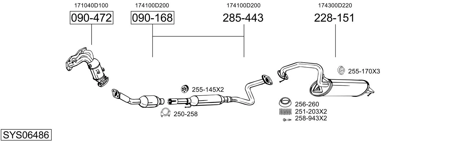 TOYOTA AVENSIS limuzína (_T25_) 1.8 VVT-i (ZZT251_, ZZT251R) - Výfukový systém - kompletní od 4/2003 do 11/2008, 1794 ccm, 95 kW, 129 hp, 1ZZ-FE, limuzína