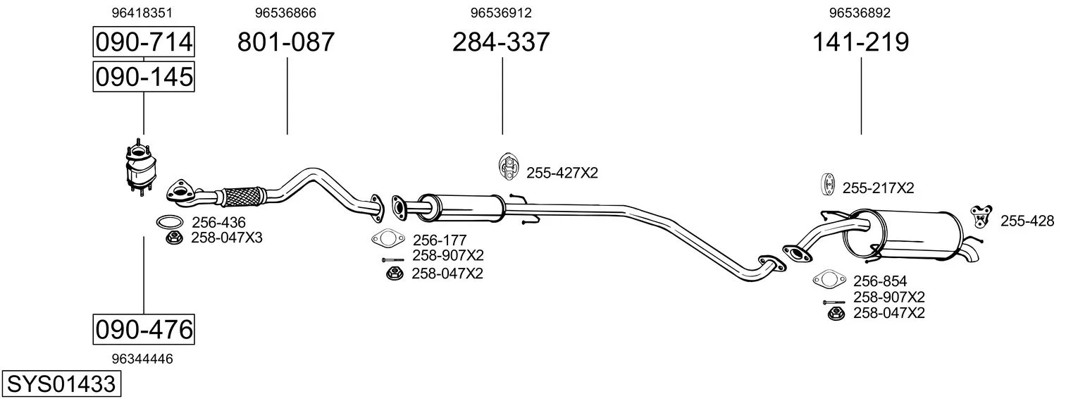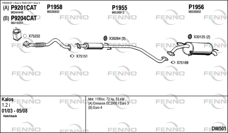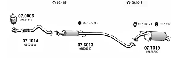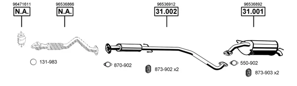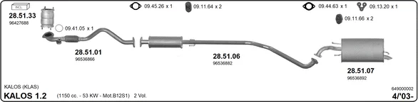 DAEWOO KALOS (KLAS) 1.2 - Výfukový systém - kompletní od 4/2003, 1150 ccm, 53 kW, 72 hp, B12S1, Šikmá zadní část