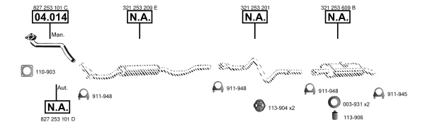 VW SANTANA (32B) 1.6 D - Výfukový systém - kompletní od 8/1981 do 12/1984, 1588 ccm, 40 kW, 54 hp, CR, JK, limuzína