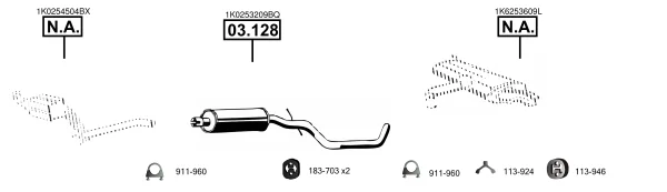 VW GOLF V (1K1) 2.0 TDI 16V - Výfukový systém - kompletní od 10/2003 do 11/2008, 1968 ccm, 103 kW, 140 hp, BKD, Šikmá zadní část