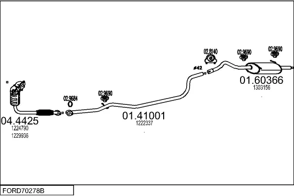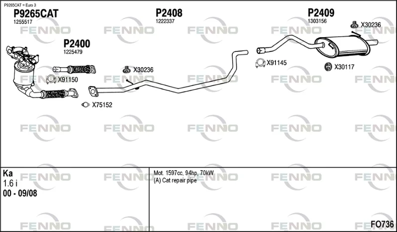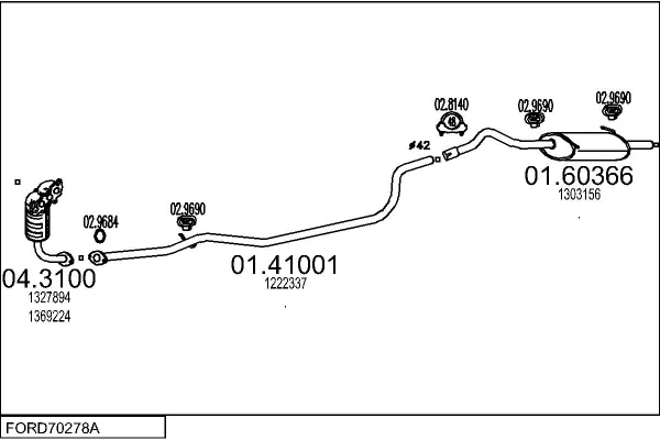 FORD KA (RB_) 1.6 i - Výfukový systém - kompletní od 2/2001 do 11/2008, 1597 ccm, 70 kW, 95 hp, CDB, CDC, Šikmá zadní část