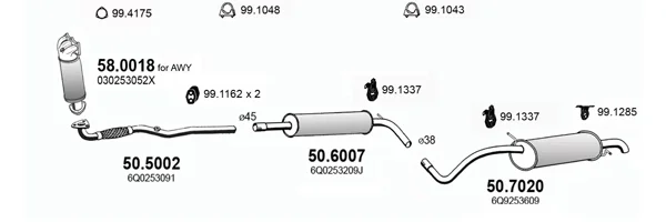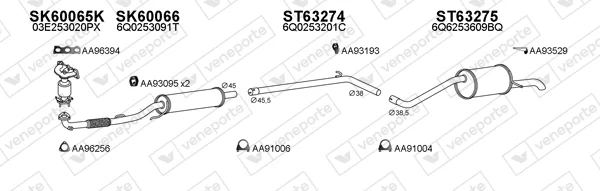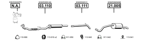 SKODA FABIA I limuzína (6Y3) 1.2 - Výfukový systém - kompletní od 1/2003 do 12/2007, 1198 ccm, 47 kW, 64 hp, AZQ, BME, limuzína
