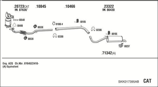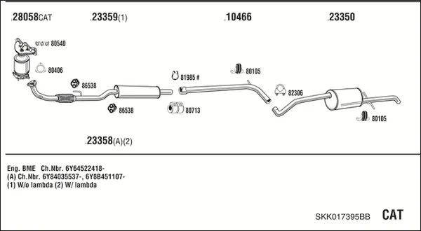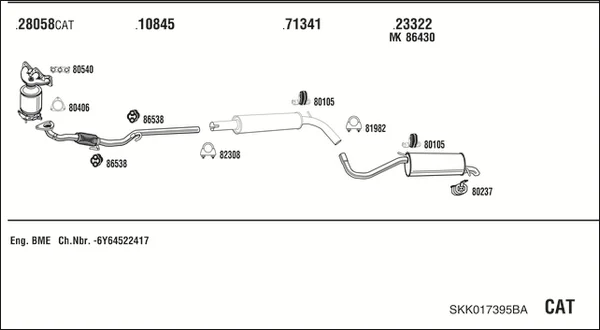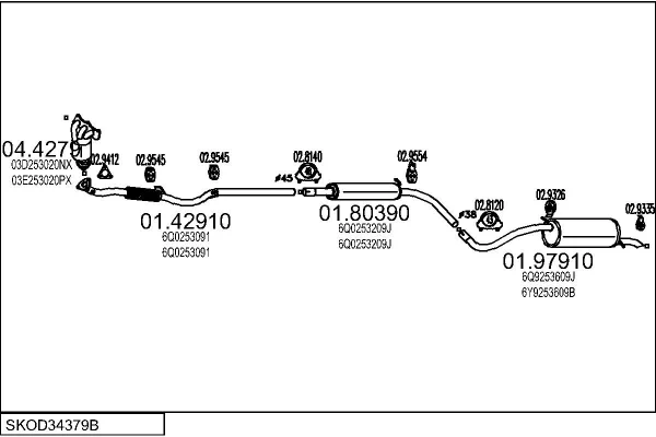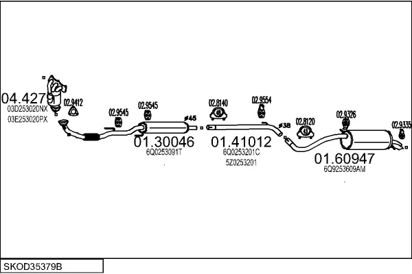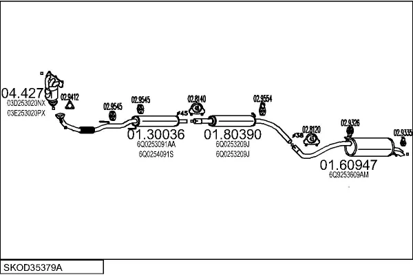 SKODA FABIA I Combi (6Y5) 1.2 - Výfukový systém - kompletní od 1/2003 do 12/2007, 1198 ccm, 47 kW, 64 hp, AZQ, BME, kombi