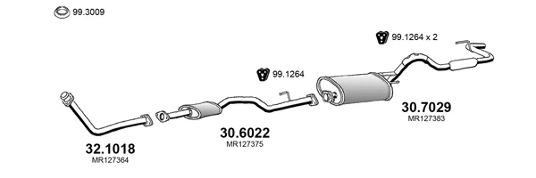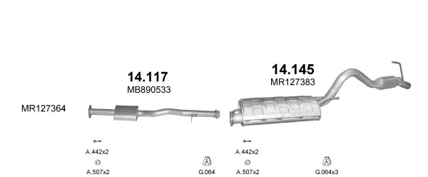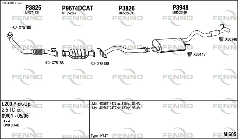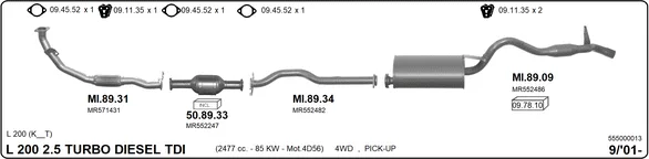 MITSUBISHI L200 (K7_T, K6_T, K5_T) 2.5 TD 4WD (K74T) - Výfukový systém - kompletní od 9/2001 do 12/2007, 2477 ccm, 85 kW, 115 hp, 4D56-T, pick-up