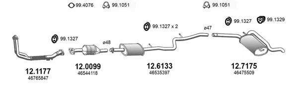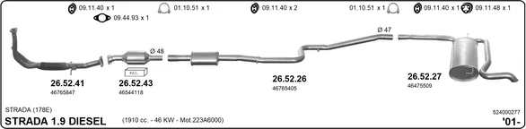 FIAT STRADA pick-up (178_, 278_) 1.9 D - Výfukový systém - kompletní od 12/2000, 1910 ccm, 46 kW, 63 hp, 223 A6.000, pick-up