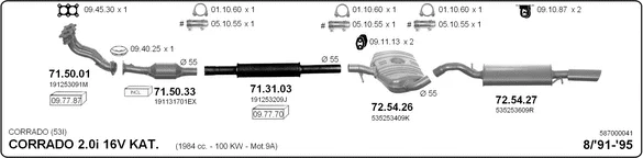 VW CORRADO (53I) 2.0 i 16V - Výfukový systém - kompletní od 8/1991 do 12/1995, 1984 ccm, 100 kW, 136 hp, 9A, kupé