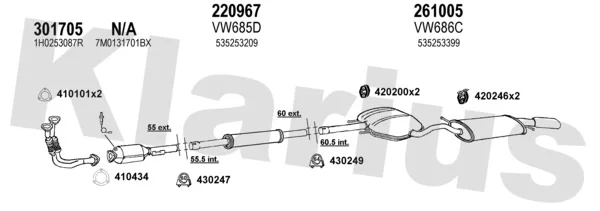 VW CORRADO (53I) 2.9 VR6 - Výfukový systém - kompletní od 8/1991 do 12/1995, 2861 ccm, 140 kW, 190 hp, ABV, kupé