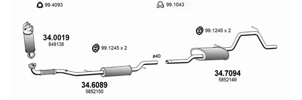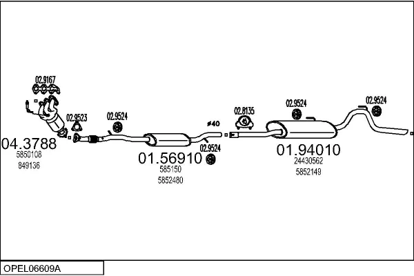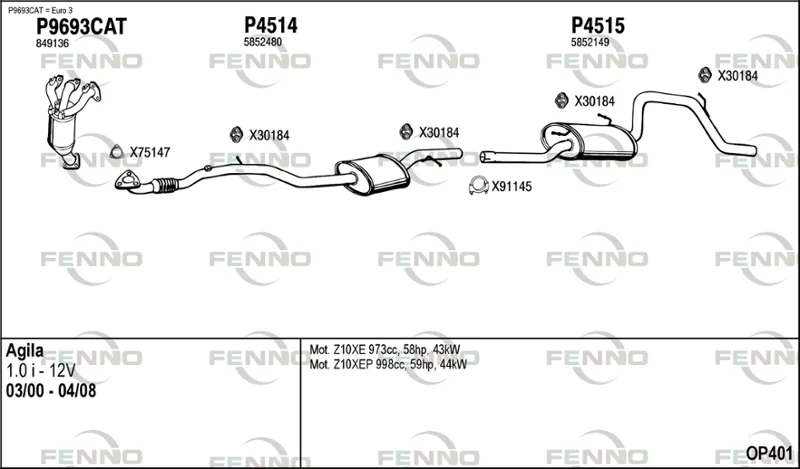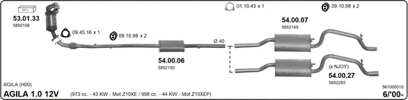 OPEL AGILA (A) (H00) 1.0 (F68) - Výfukový systém - kompletní od 8/2003 do 12/2007, 998 ccm, 44 kW, 60 hp, Z 10 XEP, Šikmá zadní část