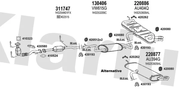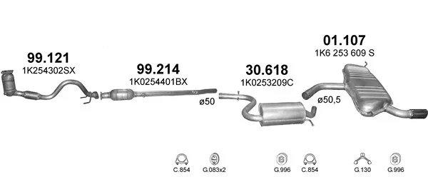 AUDI A3 (8P1) 1.6 FSI - Výfukový systém - kompletní od 8/2003 do 9/2007, 1598 ccm, 85 kW, 115 hp, BAG, BLF, BLP, Šikmá zadní část