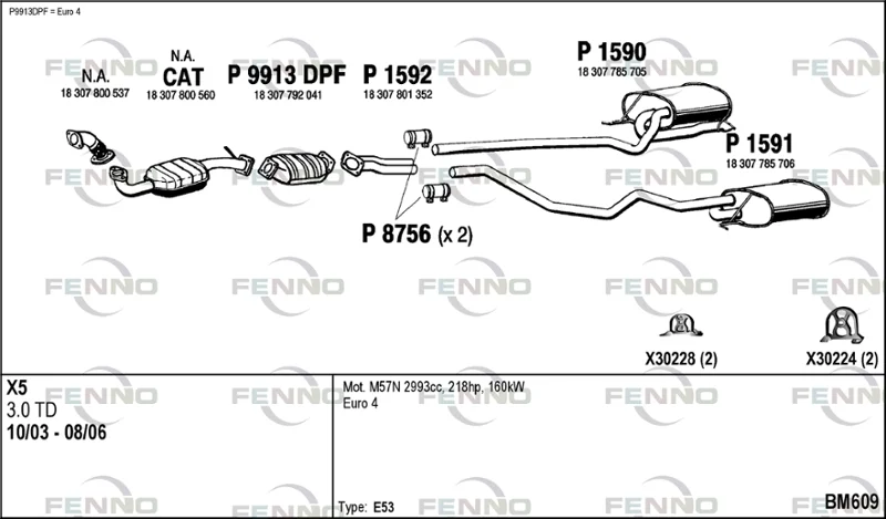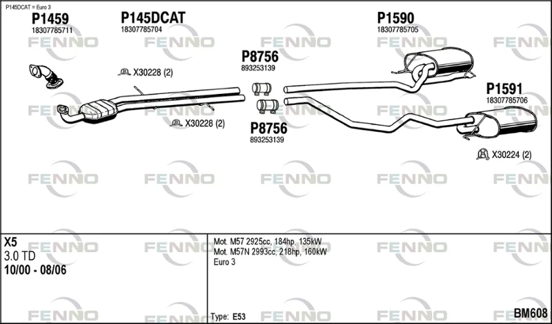 BMW X5 (E53) 3.0 d - Výfukový systém - kompletní od 10/2003 do 9/2006, 2993 ccm, 160 kW, 218 hp, M57 D30 (306D2), SUV