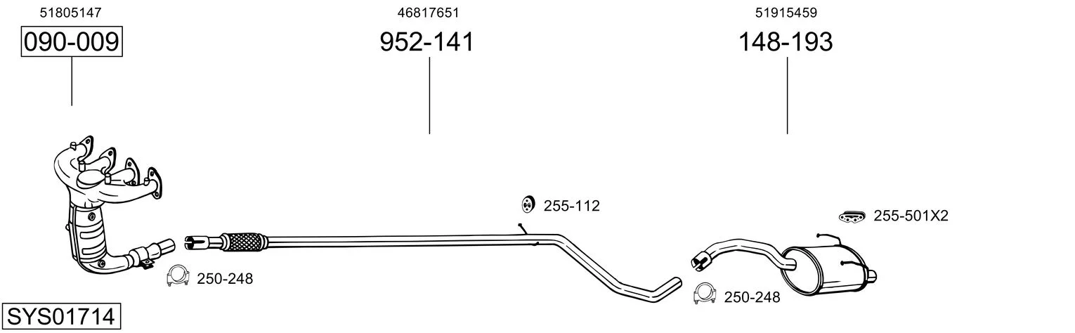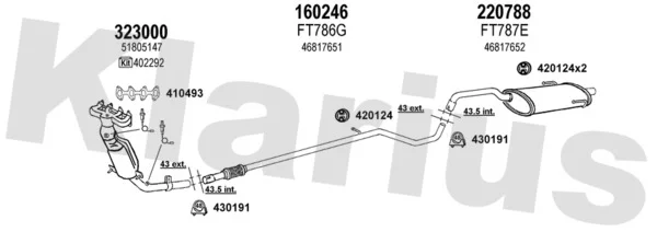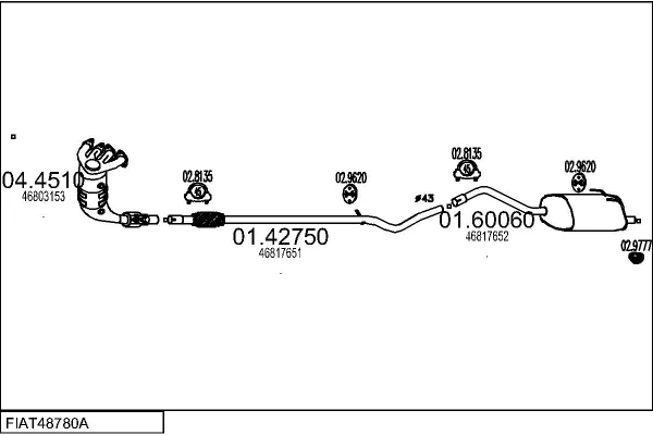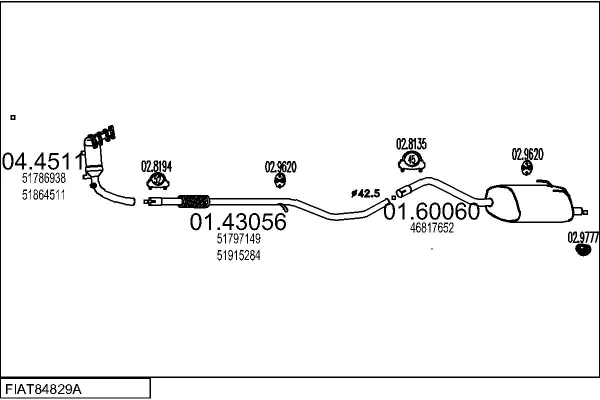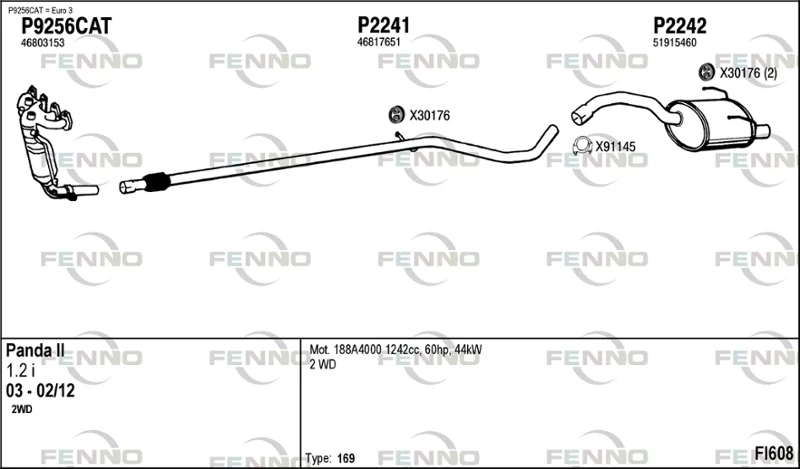 FIAT PANDA (169_) 1.2 (169.AXB11, 169.AXB1A) - Výfukový systém - kompletní od 9/2003, 1242 ccm, 44 kW, 60 hp, 188 A4.000, Šikmá zadní část