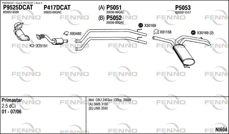 NISSAN PRIMASTAR autobus (X83) dCi 140 - Výfukový systém - kompletní od 7/2003, 2463 ccm, 99 kW, 135 hp, G9U 730, autobus