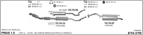 TOYOTA PRIUS Liftback (_W2_) 1.5 Hybrid (NHW20_, NHW20R) - Výfukový systém - kompletní od 9/2003 do 12/2009, 1497 ccm, 82 kW, 112 hp, 1NZ-FXE, Šikmá zadní část