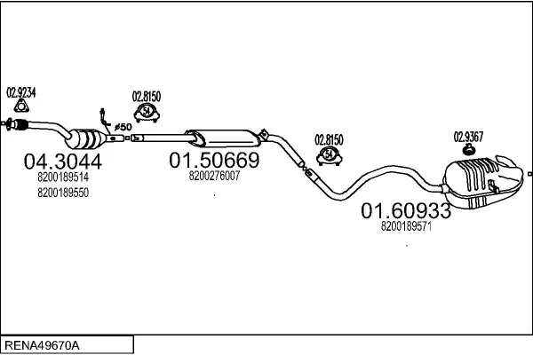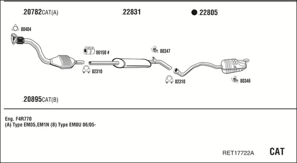 RENAULT MEGANE II Coupé-Cabriolet (EM0/1_) 2.0 - Výfukový systém - kompletní od 9/2003 do 12/2009, 1998 ccm, 99 kW, 135 hp, F4R 770, F4R 771, Kabriolet
