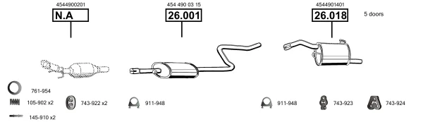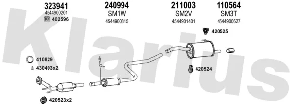 SMART FORFOUR (454) 1.1 (454.030) - Výfukový systém - kompletní od 1/2004 do 6/2006, 1124 ccm, 55 kW, 75 hp, M 134.910, Šikmá zadní část