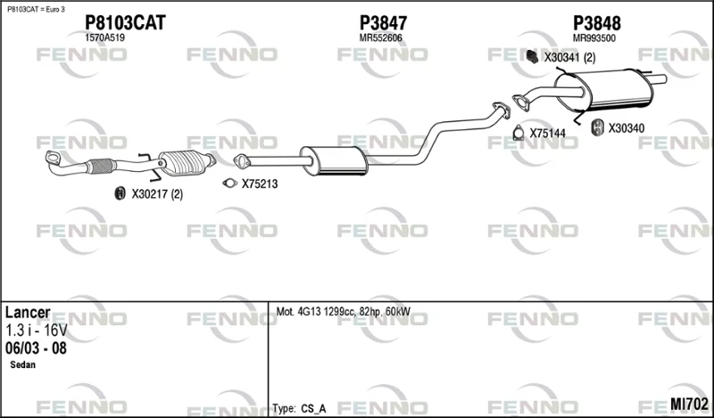 MITSUBISHI LANCER VII (CS_A, CT_A) 1.3 - Výfukový systém - kompletní od 9/2003 do 12/2013, 1299 ccm, 60 kW, 82 hp, 4G13 (16V), limuzína