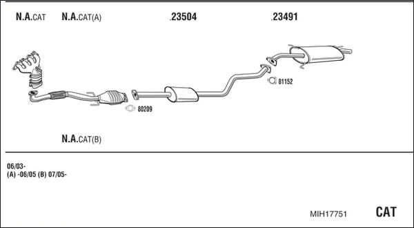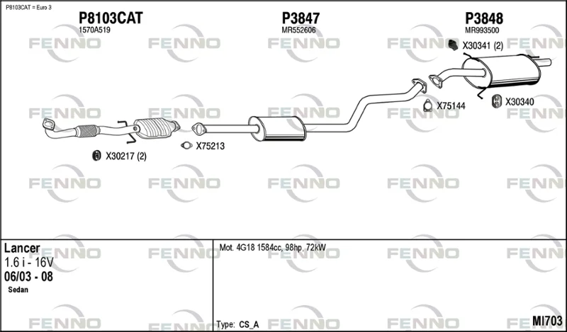 MITSUBISHI LANCER VII (CS_A, CT_A) 1.6 (CS3A) - Výfukový systém - kompletní od 9/2003 do 12/2013, 1584 ccm, 72 kW, 98 hp, 4G18, limuzína