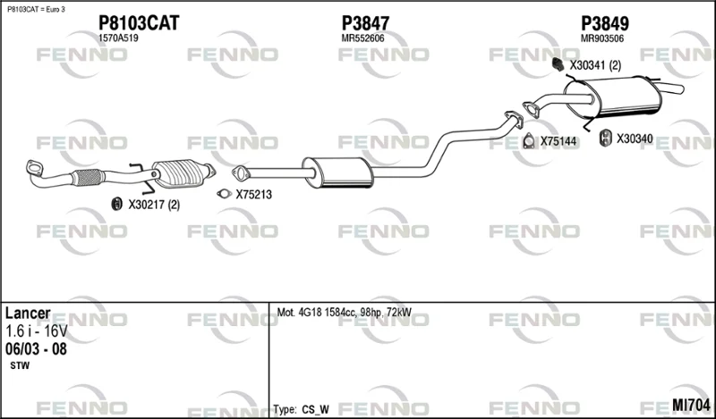 MITSUBISHI LANCER VII kombi (CS_W, CT_W) 1.6 - Výfukový systém - kompletní od 9/2003 do 10/2008, 1584 ccm, 72 kW, 98 hp, 4G18, kombi