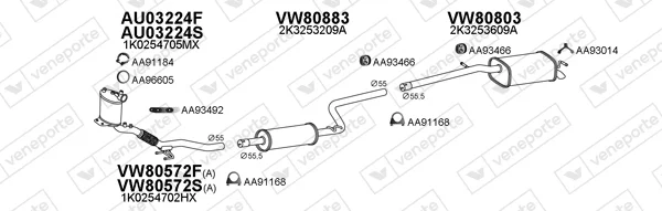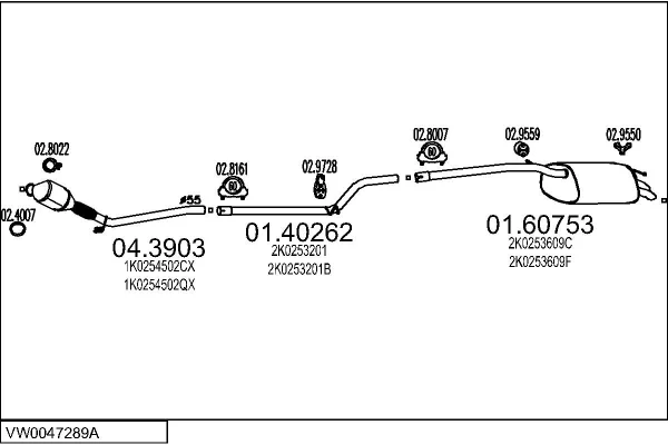 VW CADDY III velkoprostorová limuzína (2KB, 2KJ, 2CB, 2CJ) 1.9 TDI - Výfukový systém - kompletní od 4/2004 do 8/2010, 1896 ccm, 77 kW, 105 hp, BJB, BLS, velkoprostorová limuzína