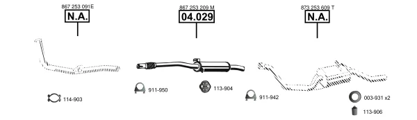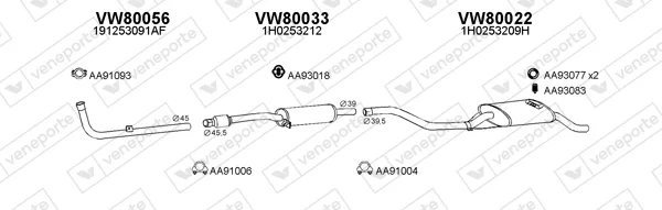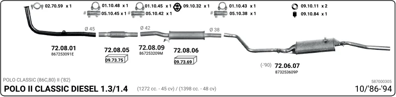VW POLO CLASSIC (86C, 80) 1.4 D - Výfukový systém - kompletní od 10/1990 do 9/1994, 1398 ccm, 35 kW, 48 hp, 1W, limuzína