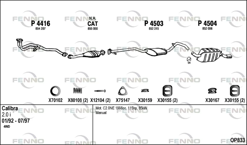 OPEL CALIBRA A (C89) 2.0 i 4x4 (M07) - Výfukový systém - kompletní od 6/1990 do 7/1997, 1998 ccm, 85 kW, 115 hp, C 20 NE, kupé