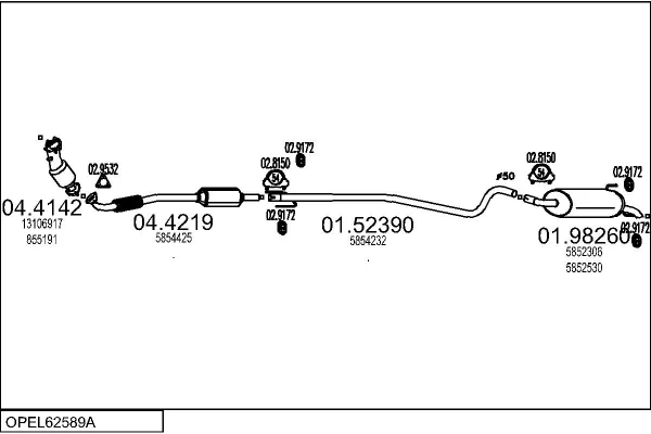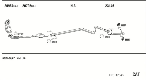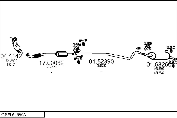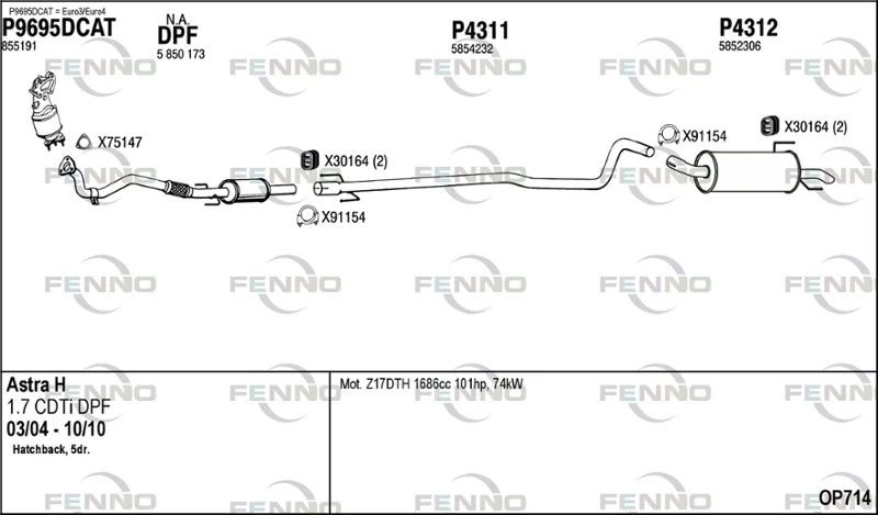 OPEL ASTRA H (A04) 1.7 CDTI (L48) - Výfukový systém - kompletní od 3/2004 do 10/2010, 1686 ccm, 74 kW, 100 hp, Z 17 DTH, Šikmá zadní část