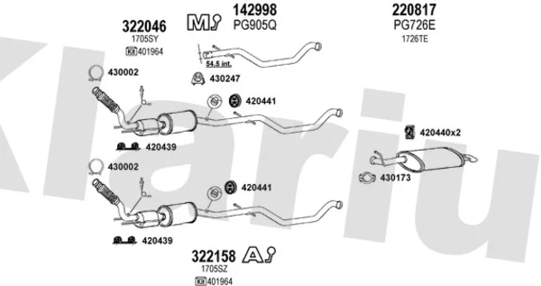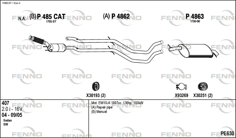 PEUGEOT 407 (6D_) 2.0 (6DRFNB, 6DRFNE) - Výfukový systém - kompletní od 3/2004 do 7/2005, 1997 ccm, 100 kW, 136 hp, RFN (EW10J4), limuzína