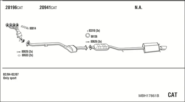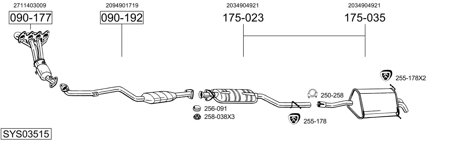 MERCEDES-BENZ C-CLASS (W203) C 230 Kompressor (203.040) - Výfukový systém - kompletní od 2/2004 do 2/2007, 1796 ccm, 141 kW, 192 hp, M 271.948, limuzína