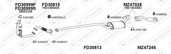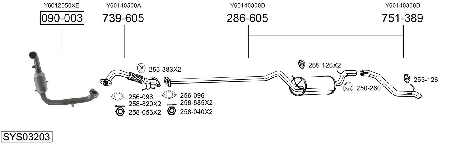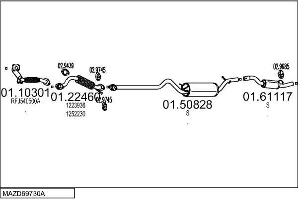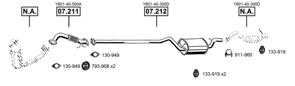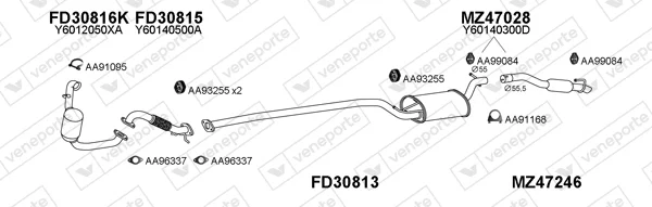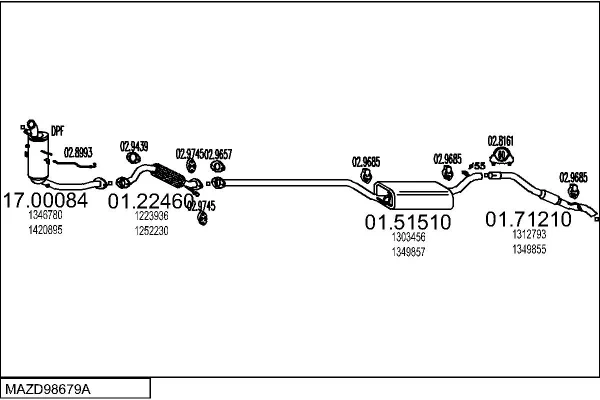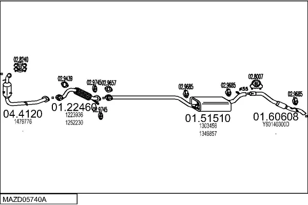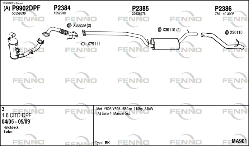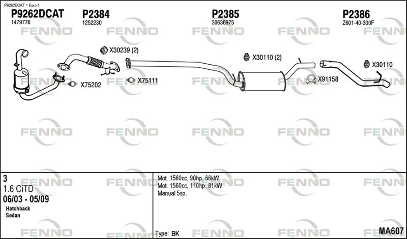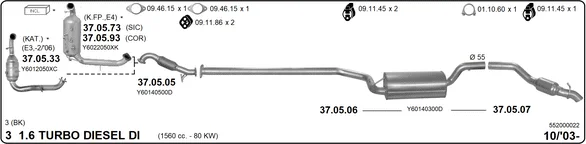 MAZDA 3 limuzína (BK) 1.6 DI Turbo (BK12Y) - Výfukový systém - kompletní od 6/2004 do 6/2009, 1560 ccm, 80 kW, 109 hp, Y601, Y603, Y605, Y642, limuzína